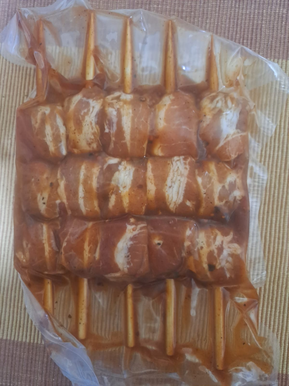 Beautifully presented cheese griller “sosatie” wrapped in bacon.  Perfect combination of flavours, best flame grilled on a braai (BBQ)